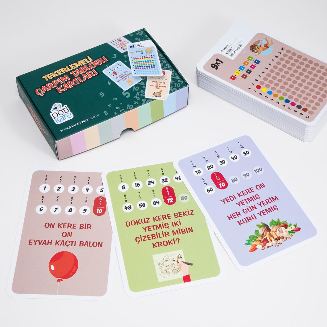 Tekerlemeli Çarpım Tablosu Kartları, çarpım tablosunu öğrenmeyi eğlenceli, kolay ve kalıcı hale getirmek için özel olarak tasarlanmıştır.