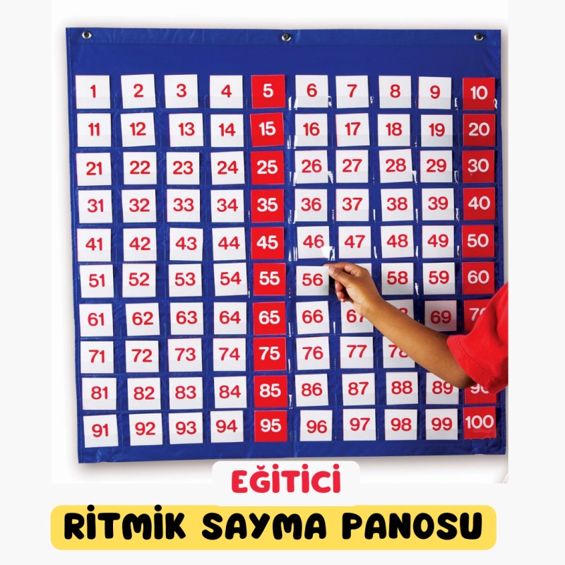 Yurtdışında sadece ritmik sayma tablosu olarak bulunan bu pano, Çarpım tablosu şeklinde ilk ve tek olarak Türkiyede. 10x10 ceplerden oluşan bu panonun yanında ritmik sayma kartları ve çarpım tablosu kartları da veriliyor. Sınıfınıza veya evinizde uygun bir yere asıp, çarpım tablosu alıştırmaları yapabilir, ritmik saymaları çalışabilirsiniz. Arkadaşlarınızla ve ailenizle çarpım tablosu oyunu oynayabilirsiniz. Kartları dizdikten sonra cevapları tahmin edin ve çevirerek kontrol edin. Pisagor tablosu mantığı ile hazırlanan bu pano ile çarpım tablosu ve ritmik saymaları hızlı ve eğlenceli bir şekilde öğrenebilirsiniz.