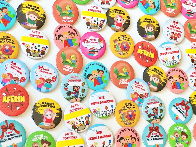 Rozet kategorimizde okuma bayramı için artık okuyorum rozetleri bulabilirsiniz. 1. sınıf okuma bayramı hediyesi olarak kullanılan artık okuyorum yaka rozetleri öğrenci motivasyonunu artırmakta ve törenlerde kullanılabilmektedir. Ayrıca okuyorum hediyeleri de web sitemizde bulunmaktadır.